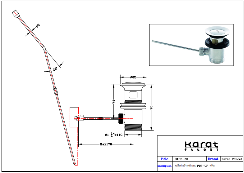 BAD2-50 สะดืออ่างล้างหน้าแบบป๊อบอัพ