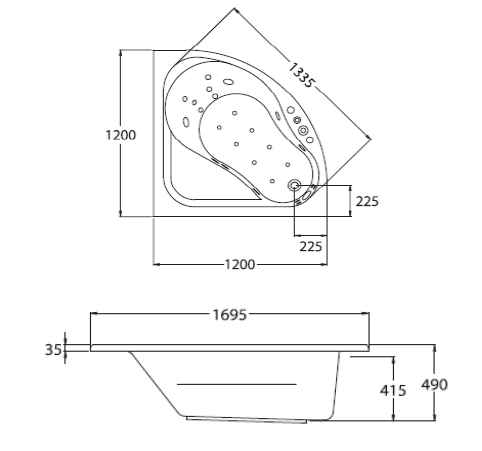 BT234PP (H) อ่างอาบน้าอะครีลิคธรรมดา รุ่น จีโนว่า (ไฮยีน) อ่างดีไซน์ร่วมสมัย แบบเข้ามุม ไม่ต้องก่อเคาน์เตอร์ติดตั้งแบบเข้ามุมขนาด 1200 x 1200 x 648 มม. ความจุน้ำ176 ลิตร สะดืออ่างอาบน้ำรุ่น TS311PP